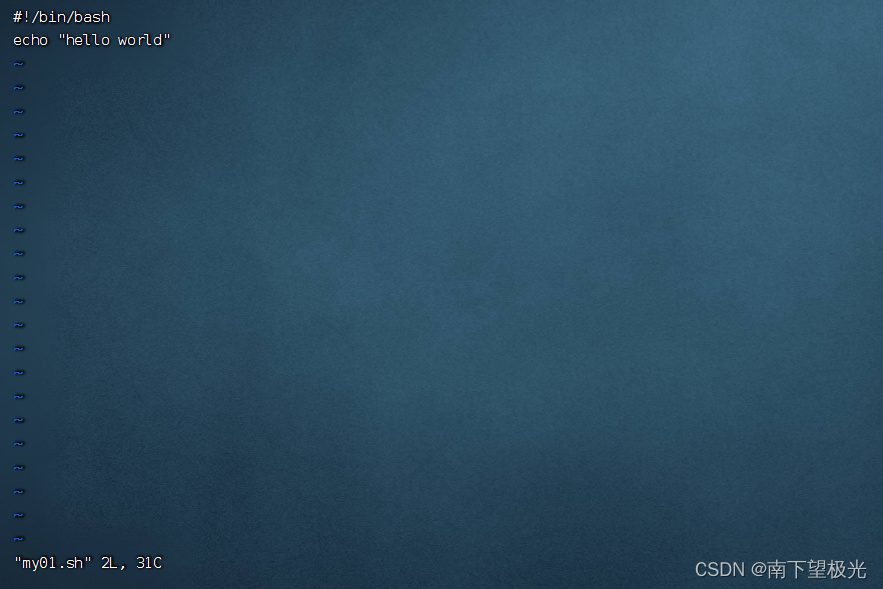 在虚拟机内创建my01.sh脚本文件(vi my01.sh)可直接创建并进入文件命令行模式