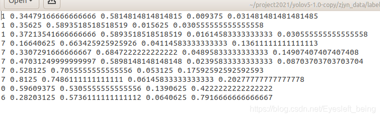 脚本作用就是根据之前生成的train.txt和val.txt保存的图片名字找到对应的label文件,然后转成txt的形式保存。具体保存形式为:
