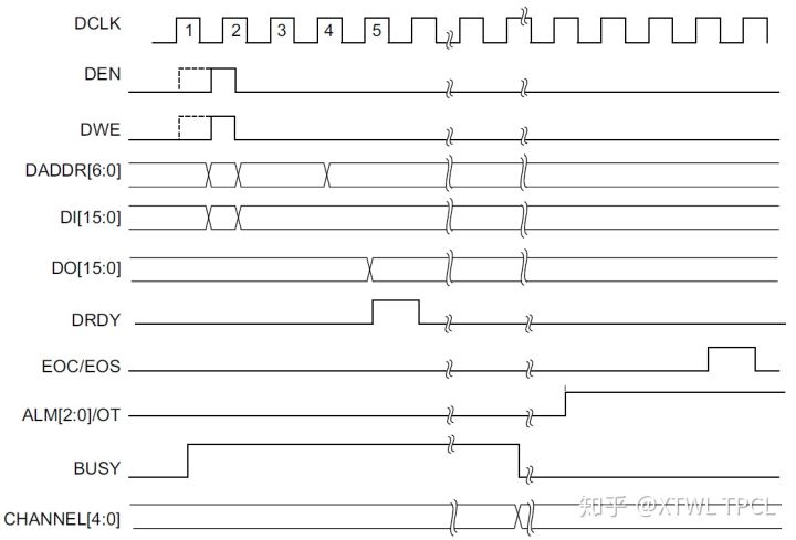 使用DRP端口的时候,有一个地方需要注意,就是DRP端口的时序。UG476似乎没有提供接口时序。这部分请参考XADC的文档手册——UG480。