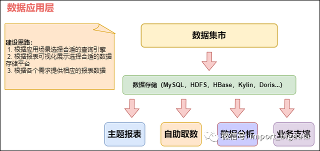 数据应用:前端应用直接读取的数据源;根据报表、专题分析需求而计算生成的数据。