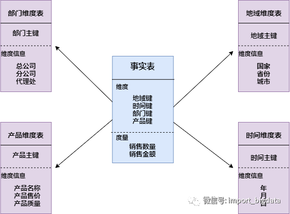 典型的代表是我们比较熟知的星形模型(Star-schema),以及在一些特殊场景下适用的雪花模型(Snow-schema)。