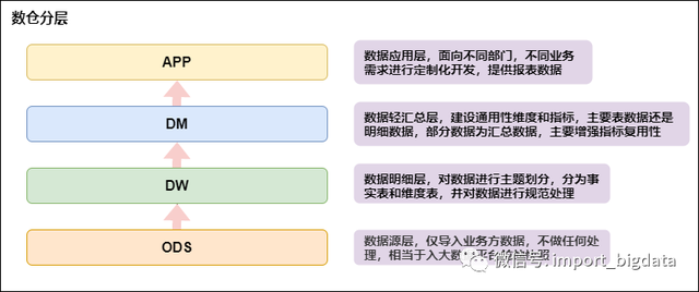 用空间换时间,通过大量的预处理来提升应用系统的用户体验(效率),因此数据仓库会存在大量冗余的数据;不分层的话,如果源业务系统的业务规则发生变化将会影响整个数据清洗过程,工作量巨大。通过数据分层管理可以简化数据清洗的过程,因为把原来一步的工作分到了多个步骤去完成,相当于把一个复杂的工作拆成了多个简单的工作,把一个大的黑盒变成了一个白盒,每一层的处理逻辑都相对简单和容易理解,这样我们比较容易保证每一个步骤的正确性,当数据发生错误的时候,往往我们只需要局部调整某个步骤即可。