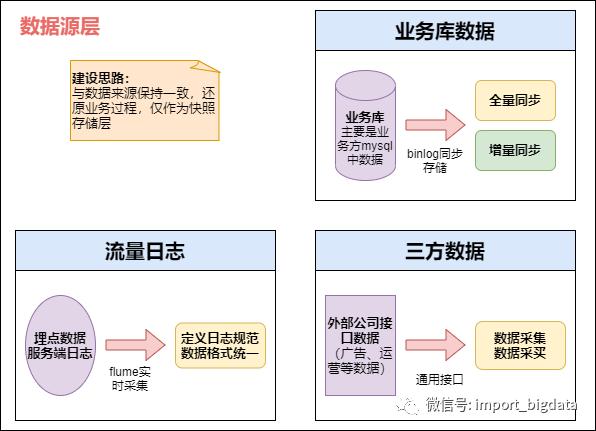 数据源层数据源层主要将各个业务数据导入到大数据平台,作为业务数据的快照存储。