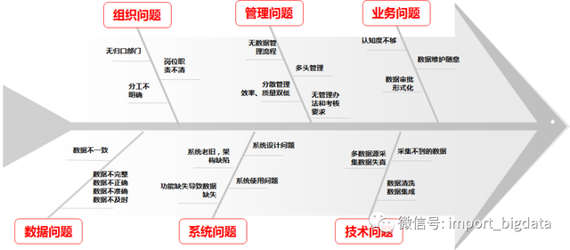 任何企业实施数据治理都不是为了治理数据而治理数据,其背后都是管理和业务目标的驱动。企业中普遍存在的数据质量问题有:数据不一致、数据重复、数据不准确、数据不完整、数据关系混乱、数据不及时等。
