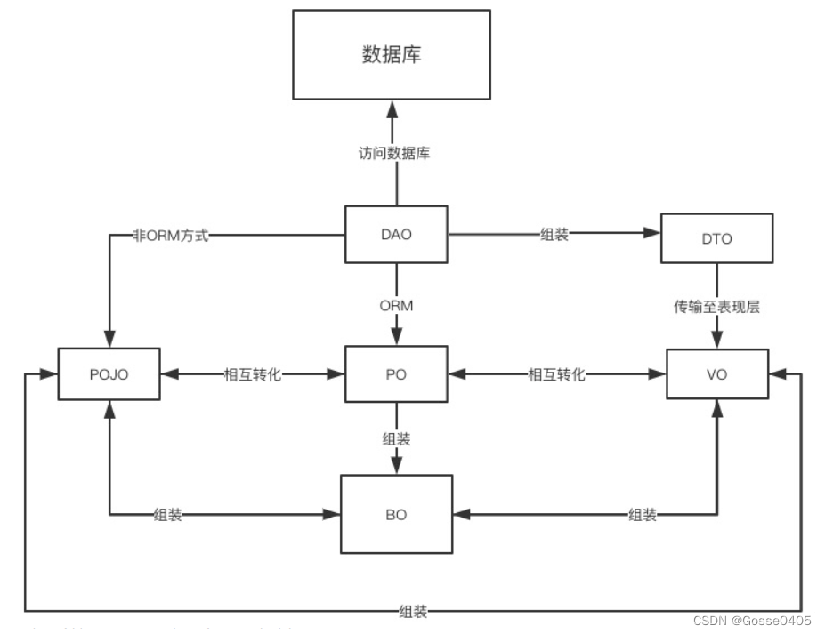 POJO(Plain Ordinary Java Object)简单的 Java 对象,实际就是普通的 JavaBeans,是为了避免和 EJB(Enterprise JavaBean)混淆所创造的简称。POJO 实质上可以理解为简单的实体类,其中有一些属性及其getter和setter方法的类,没有业务逻辑,也不允许有业务方法,也不能携带有connection之类的方法。POJO 是 JavaEE 世界里面最灵活的对象,在简单系统中,如果从数据库到页面展示都是 POJO 的话,它可以是 DTO;如果从数据库中到业务处理中都是 POJO 的话,它可以是 BO;如果从数据库到整个页面的展示的话,它也可以是 VO.
