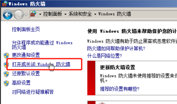 - 打开或关闭windows防火墙
