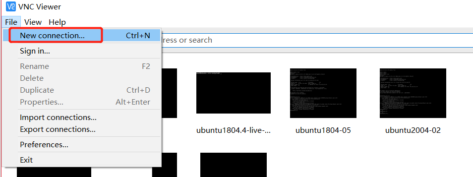 按照以下示例,打开本地windows安装好的vnc客户端软件,选择File -> New connection新建一个连接