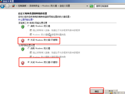 - 选择关闭 防火墙配置,点击确定即可关闭防火墙