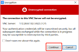 右键新创建好的 VNC会话,点击Connect即可连接至windows服务器。若提示unencrypted,选择continue继续连接即可