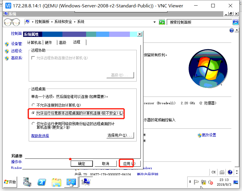 选择允许运行任意版本远程桌面的计算机连接