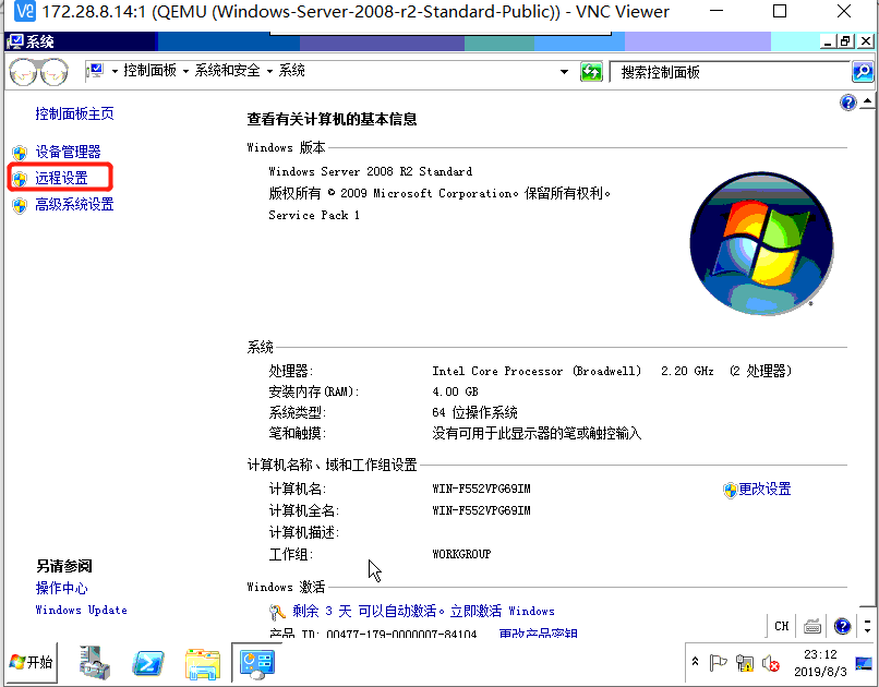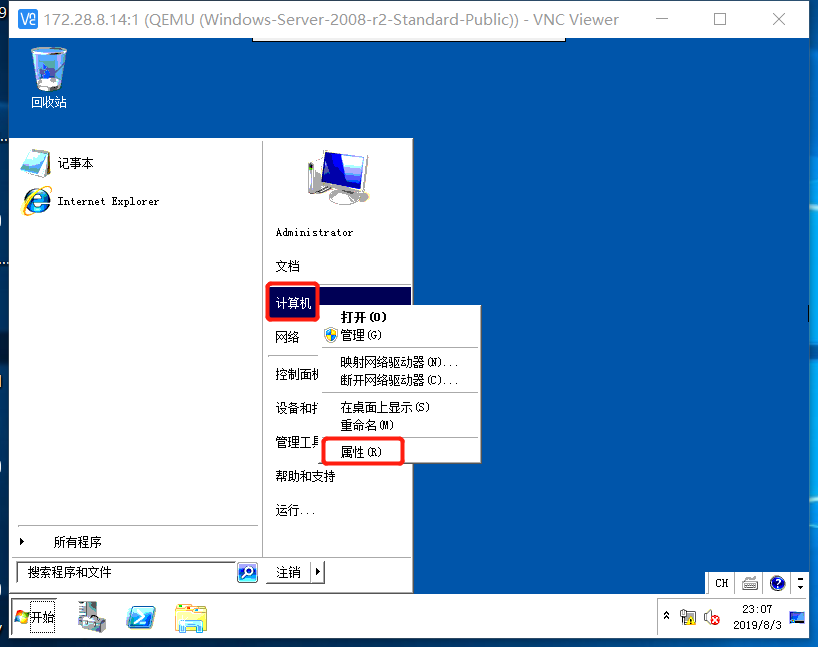 操作前置条件,已通过VNC连接至windows虚拟机,并可以执行操作