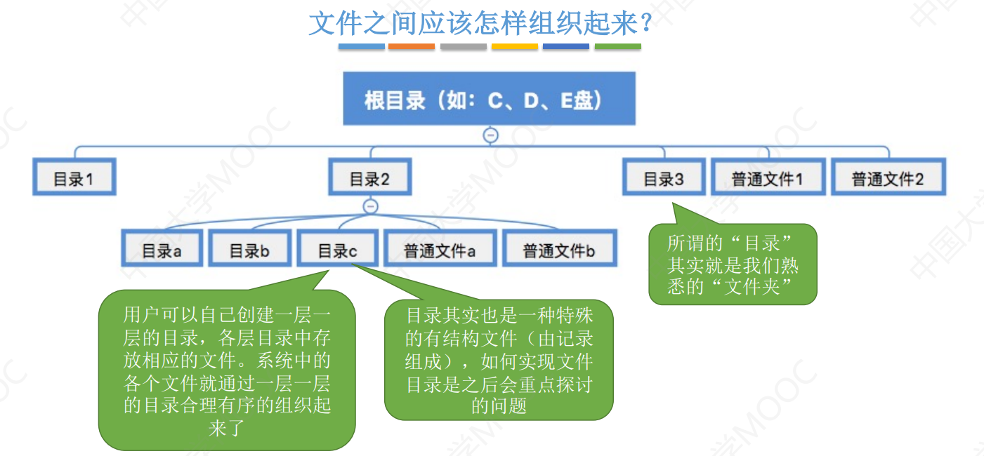 FCB的有序集合称为 ==文件目录,==一个FCB就是一个文件目录项;