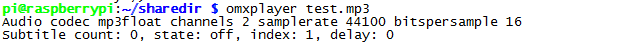 切回hdmi输出也可以直接omxplayer test.mp3,因为默认选择的就是hdmi输出。