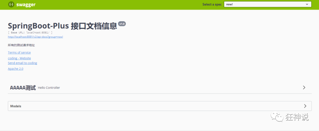 2、重启项目测试,由于我们配置根据包的路径扫描接口,所以我们只能看到一个类(为上面创建的helloController)