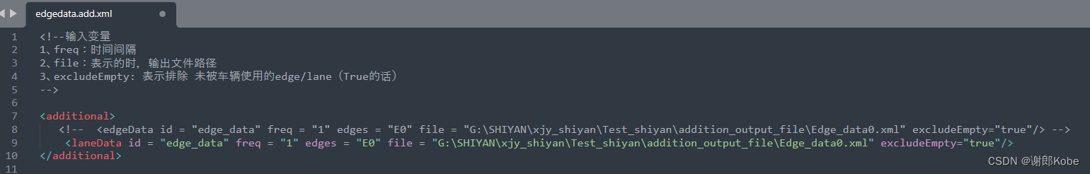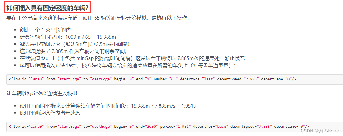 (9) Speed(速度):时间间隔内,edge/lane上的平均速度。注意:这是空间平均速度,而非车辆的时间平均速度。注:慢车在edge花费更多时间,所以它们对平均速度的影响比例更高。