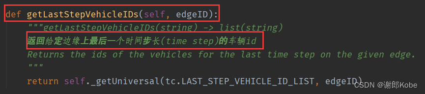 1、返回给定边缘上,最后一个时间步长(time step)的车辆id