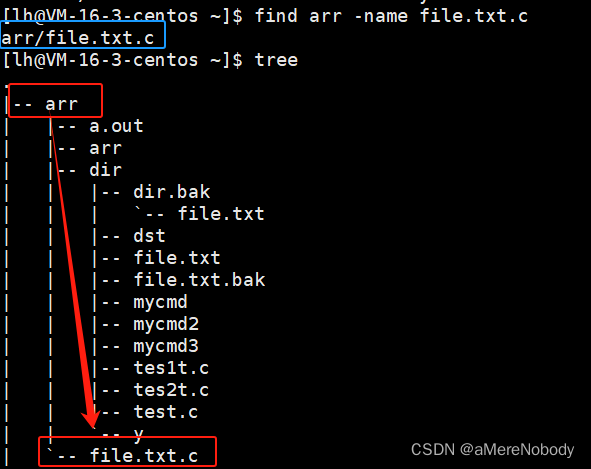 示例:如我查找arr目录下的file.txt.c文件。
