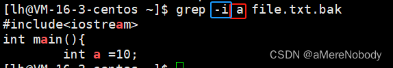 示例:如下我使用了-i来搜寻file.txt.bak(提前写入过内容的)文件中的a这个字符串。