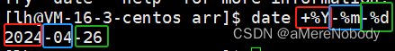 结果如:执行指令之后显示除了年(%Y),月(%m),日(%d),2024-04-26