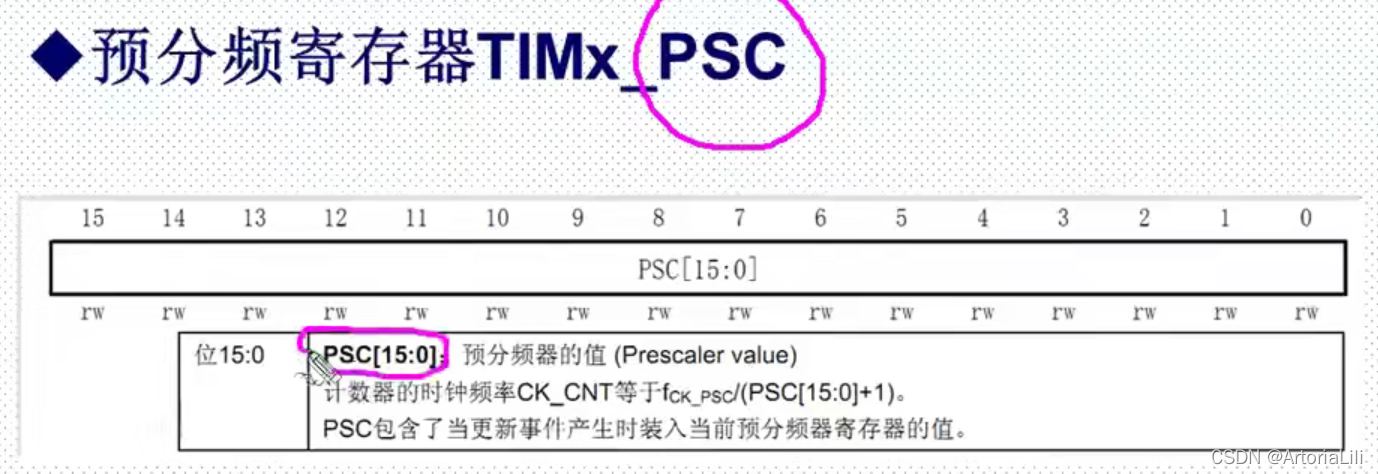 2)16位可编程(可实时修改)预分频(TIMx_PSC)