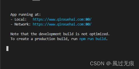 注意:fs要在最上面设置,path本来就有,disableHostCheck: true,上面设置过,E:/zs/www.qinxuehai.com-key.pem不能乱写是你上面下载证书路径跟你设置域名对应,到这里就设置完了,重新启动。