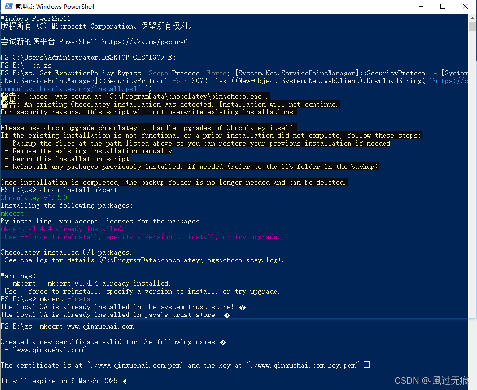 我们可以通过powershell下载免费的证书,这样我们就可以域名+证书在vue.config.js配置https