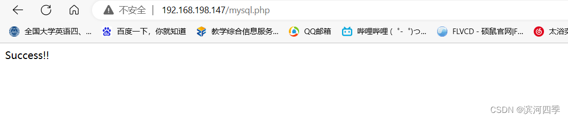 然后浏览器上连接你的web服务器IP;显示Success!!成功连接mysql服务器。