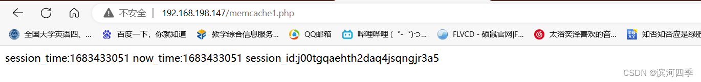 vim /var/www/html/memcache1.php<?php session_start(); if (!isset($_SESSION['session_time'])) { $_SESSION['session_time'] = time(); } echo "session_time:".$_SESSION['session_time']." "; echo "now_time:".time()." "; echo "session_id:".session_id()." "; ?>