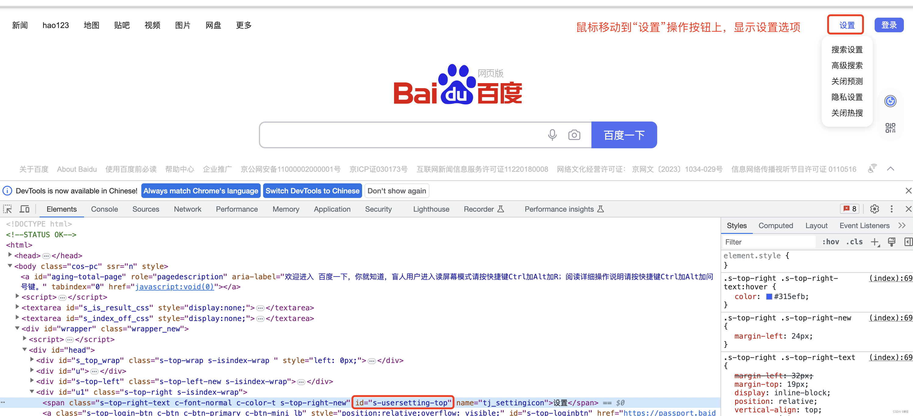 ActionChains(driver).move_to_element(driver.find_element('id', 's-usersetting-top')).perform()