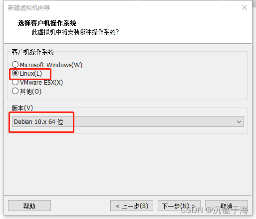 4.选择操作系统:Linux,选择版本为:Debian 10.x64位;点击下一步。
