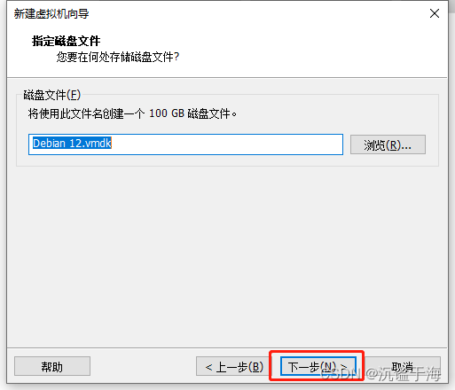 注:这是给虚拟机分配磁盘大小,我设为100GB(其为虚拟机磁盘最大可达到的值,不是一开始就占用这么大,用多少占用多少)。
