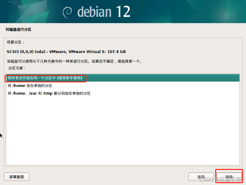 默认,选择“将所有文件放在同一个分区中(推荐新手使用)”,点击继续。