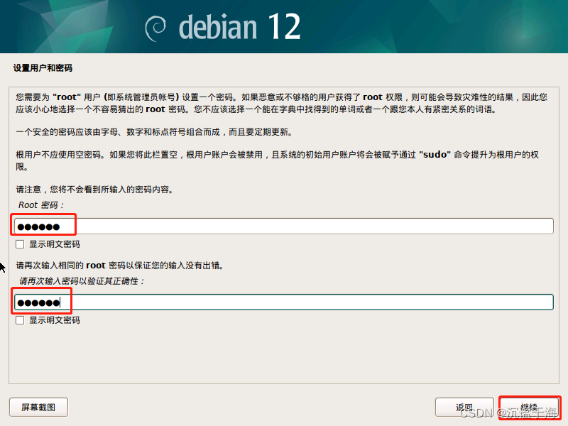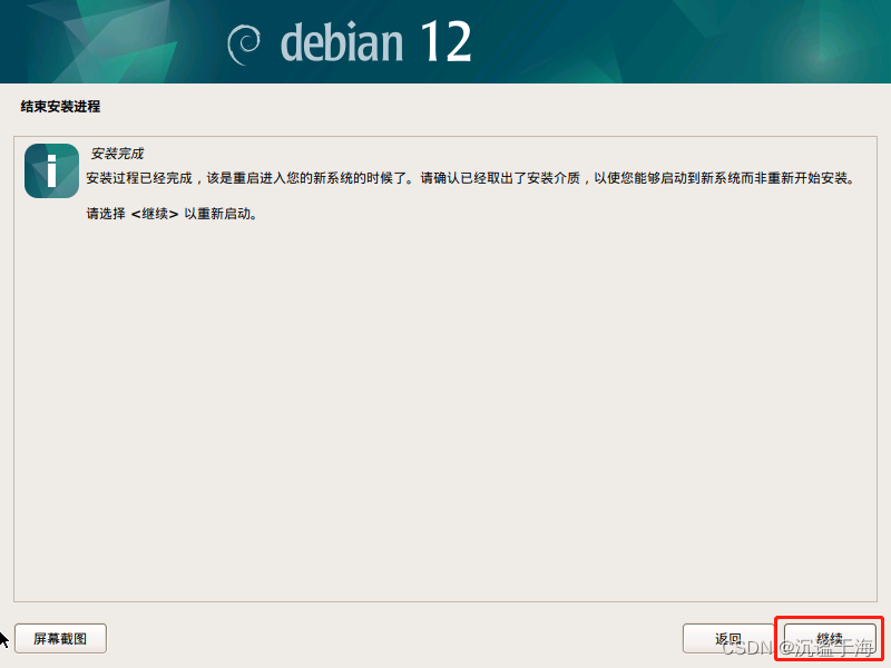 15.安装软件的选择,(我的使用中会用到SSH server,这边的选择如下图),选择完成;点击继续。