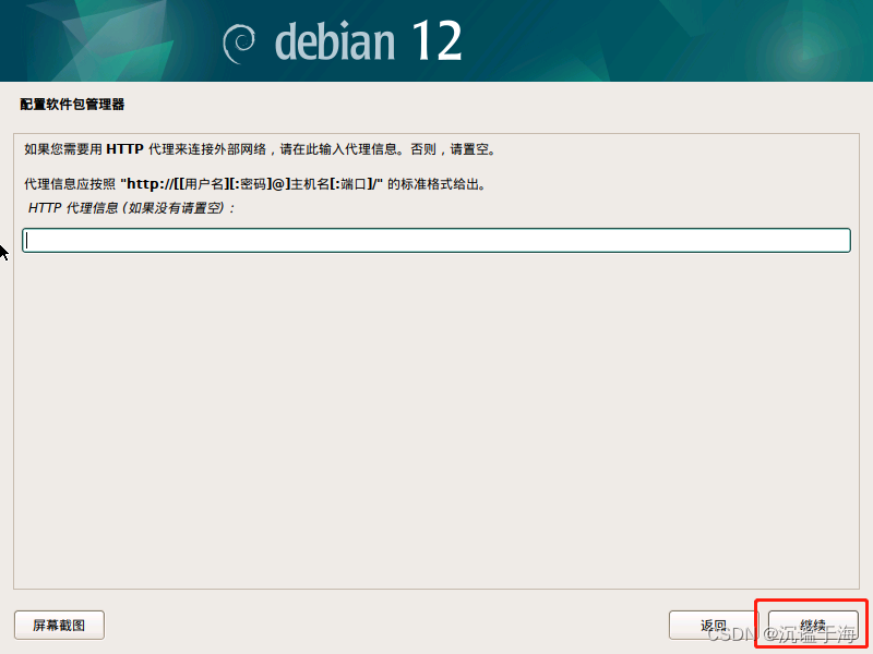 输入“HTTP代理信息”,这里不填直接点击继续。