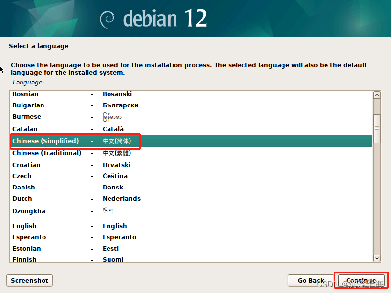 3.选择语言,这里选择“chinese” ,中文,点击“Continue”继续。