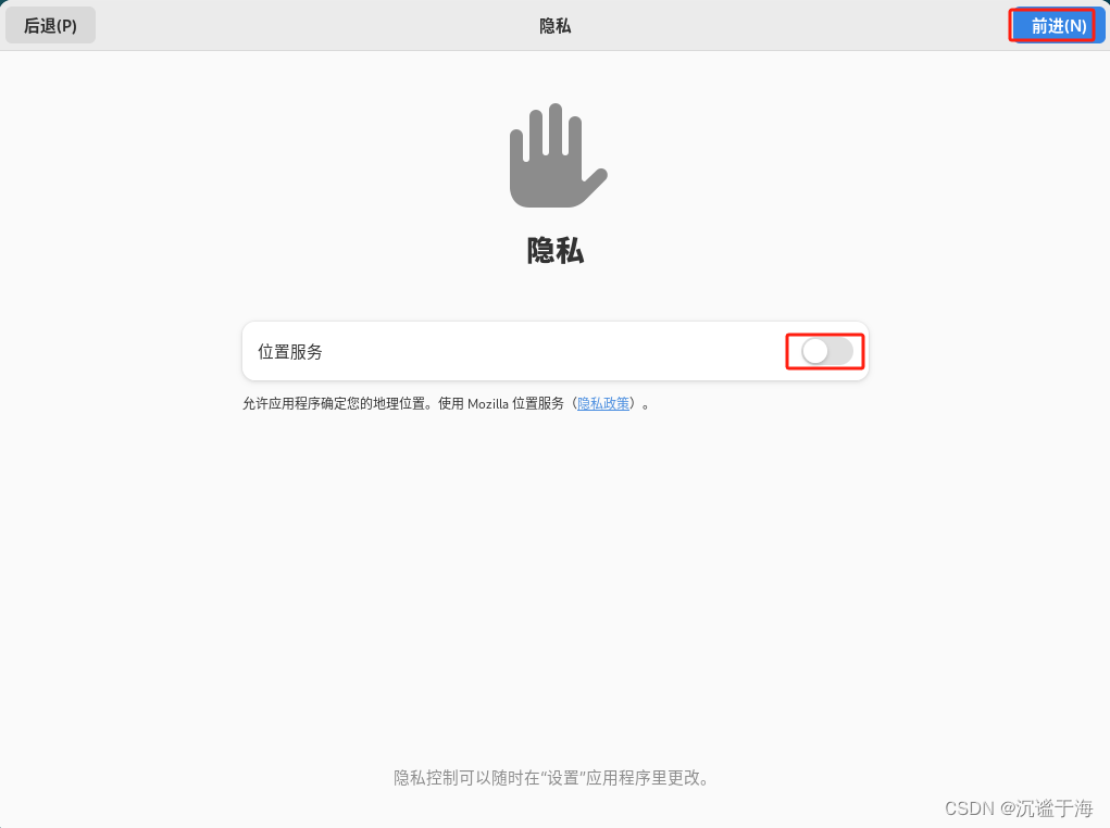 3.是否开启位置服务,这边不需要,取消掉,点击前进。