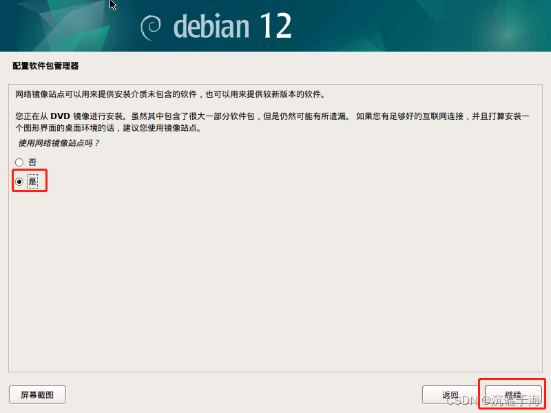 13.是否使用网络镜像站点,选择“是”,点击继续。