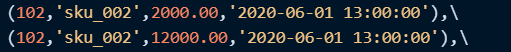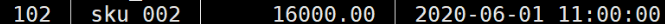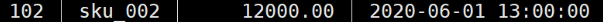 (102,'sku_002',12000.00,'2020-06-01 13:00:00'),\