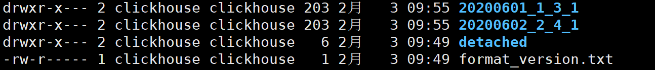 在hive中,分区是通过HDFS中分目录实现的;clickhouse中也是通过分目录实现的,只不过是在本地磁盘