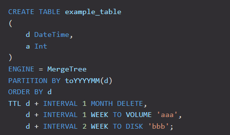 TTL 即 Time To Live,MergeTree 提供了可以管理数据表或者列的生命周期的功能