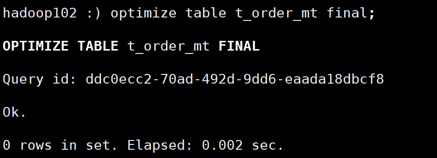 也可以手动通过 optimize 执行,把临时分区的数据,合并到已有分区中: