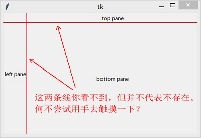 PanedWindow 组件(Tk8.4 新增)是一个空间管理组件。跟 Frame 组件类似,都是为组件提供一个框架,不过 PanedWindow 允许让用户调整应用程序的空间划分。