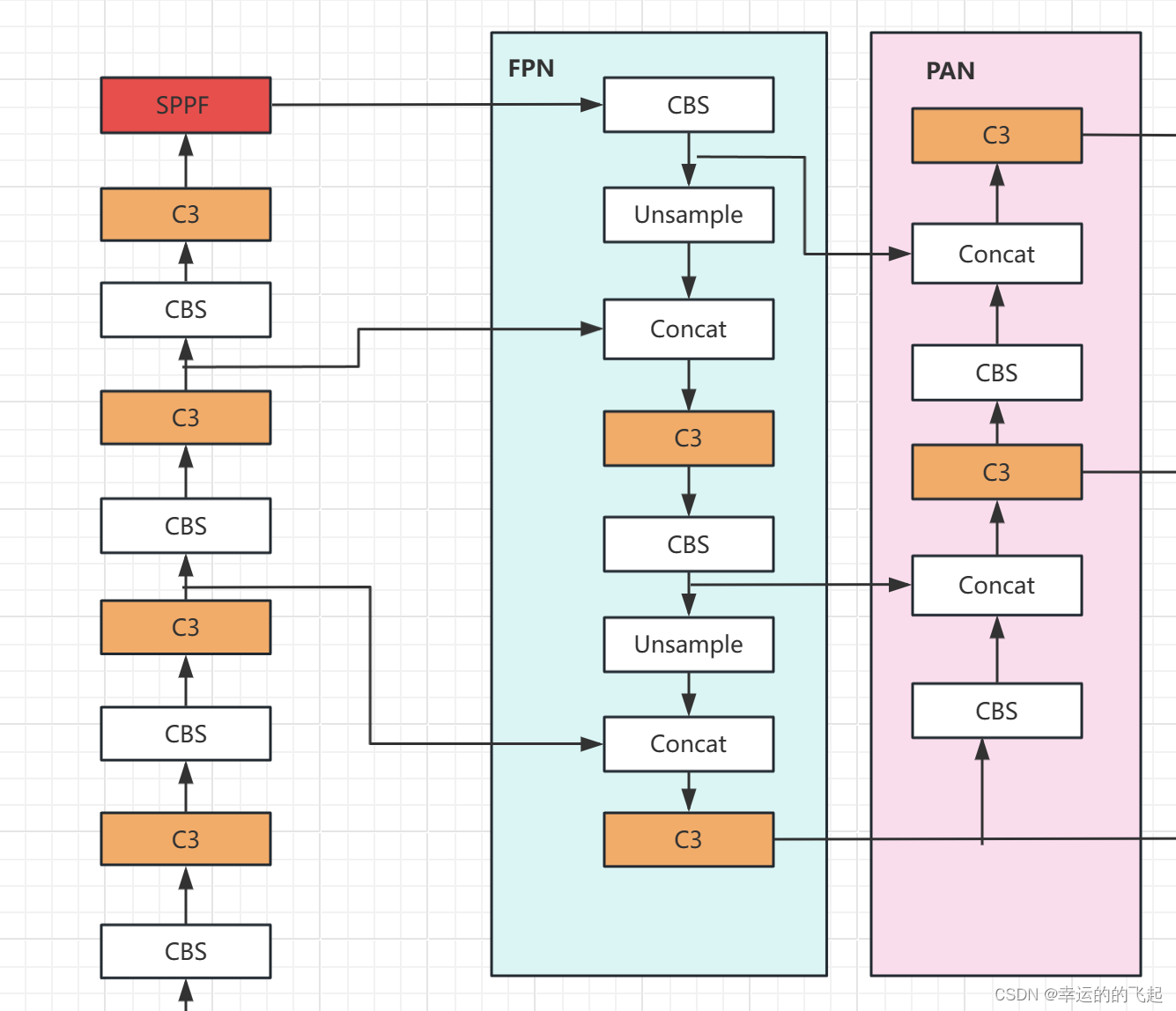 - Neck:主要对特征图进行多尺度特征融合,并把这些特征传递给预测层。