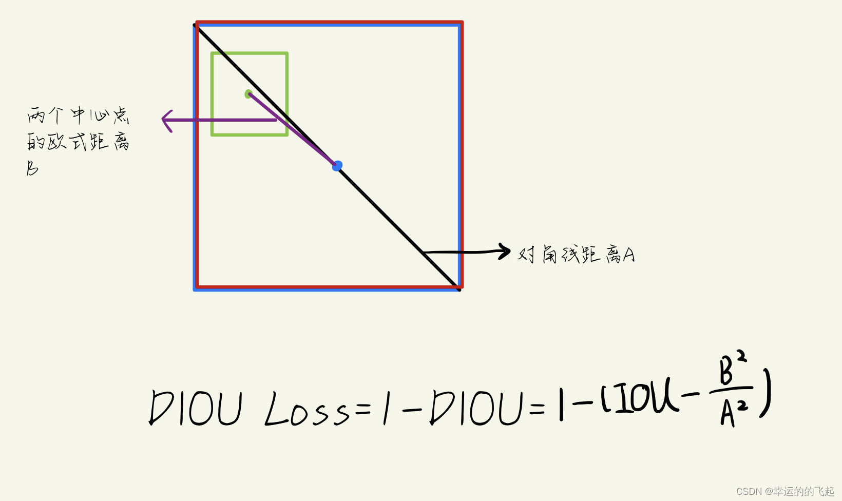 DIOU Loss:在IOU和GIOU的基础上,增加了中心点归一化距离,解决了目标框完全包裹预测框时GIOU无意义的问题。