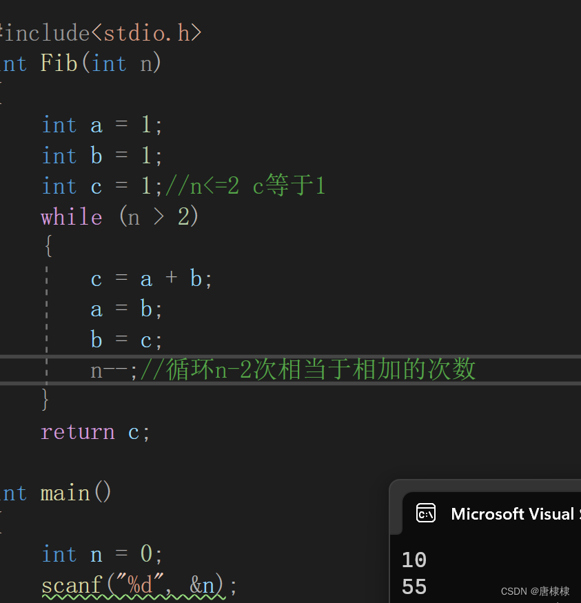 n--;//循环n-2次相当于相加的次数