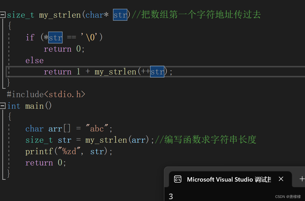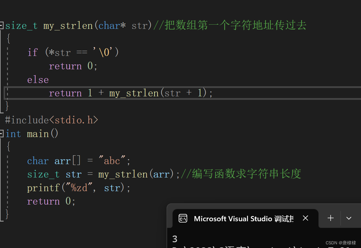 size_t str=my_strlen(arr);//编写函数求字符串长度