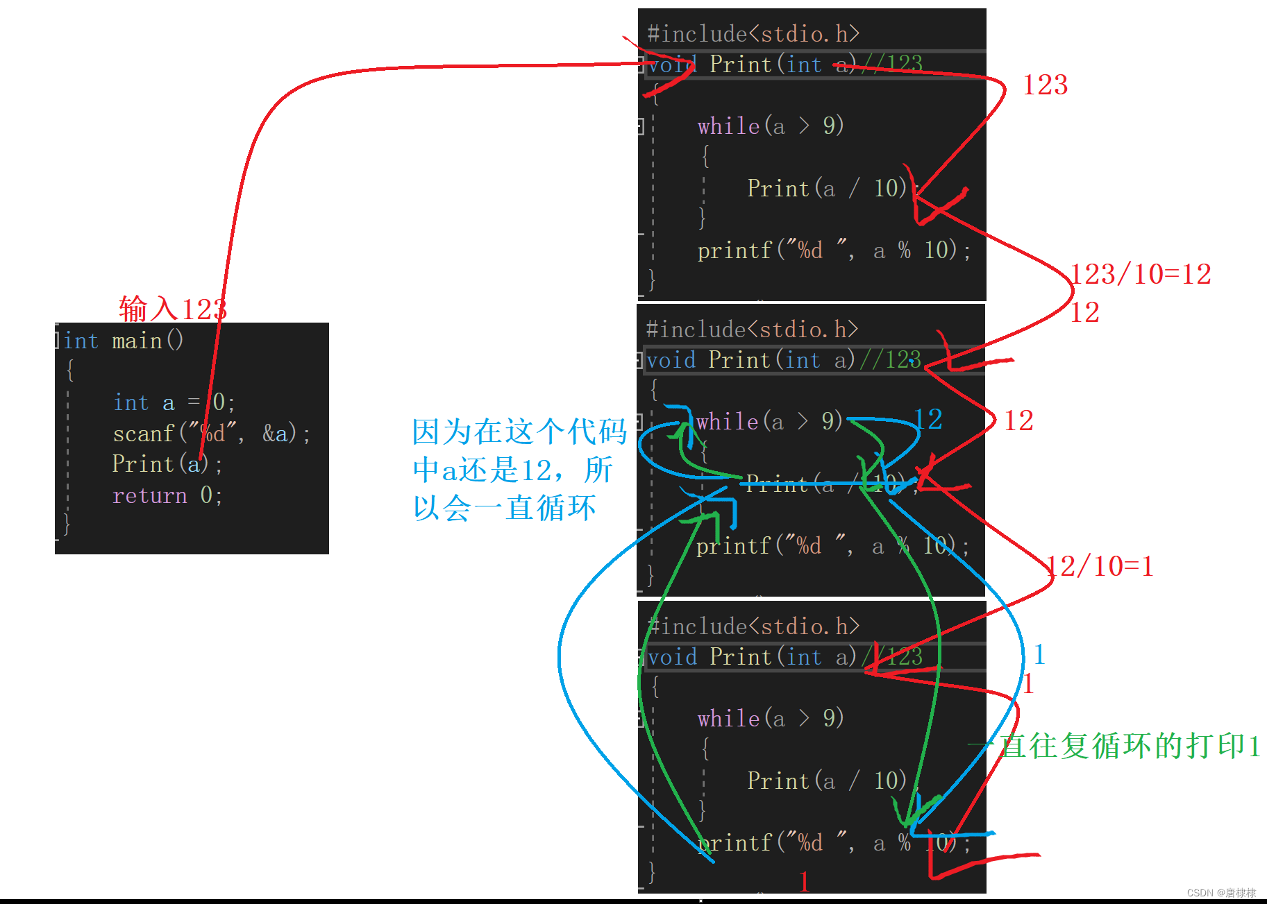 while (a)//a除以到最后1/10得0.1不是整数表达式,跳出循环