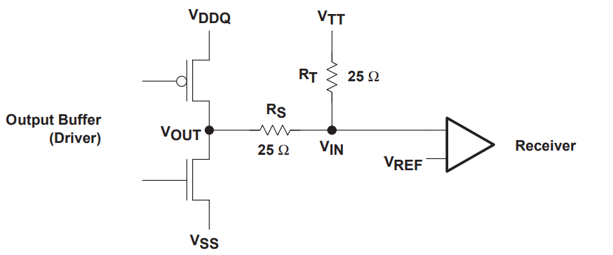 DDR常用的IO形式是SSTL (Stub Series Terminated Logic),比如SSTL_2,SSTL_18等。(DDR4中已经改用pseudo open-drain (POD)的形式,在此就不介绍了,主要原因还是我不懂)