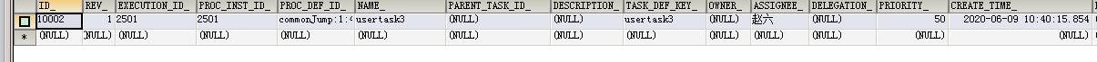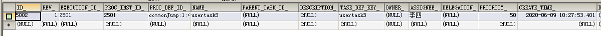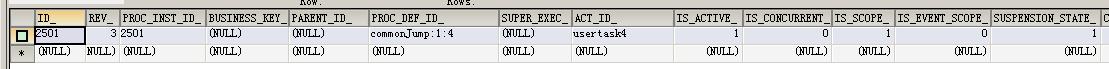 执行完毕后查看act_ru_execution表,此时已经跳转到userTask3了: