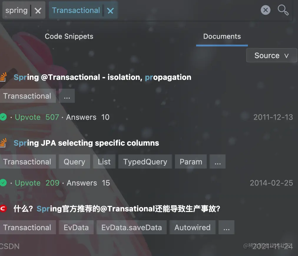 同样,点击右侧的 document 就能看到各个网站对这个问题的相关回答。可以说是非常方便了,不需要在浏览器和idea之间互相切换了。